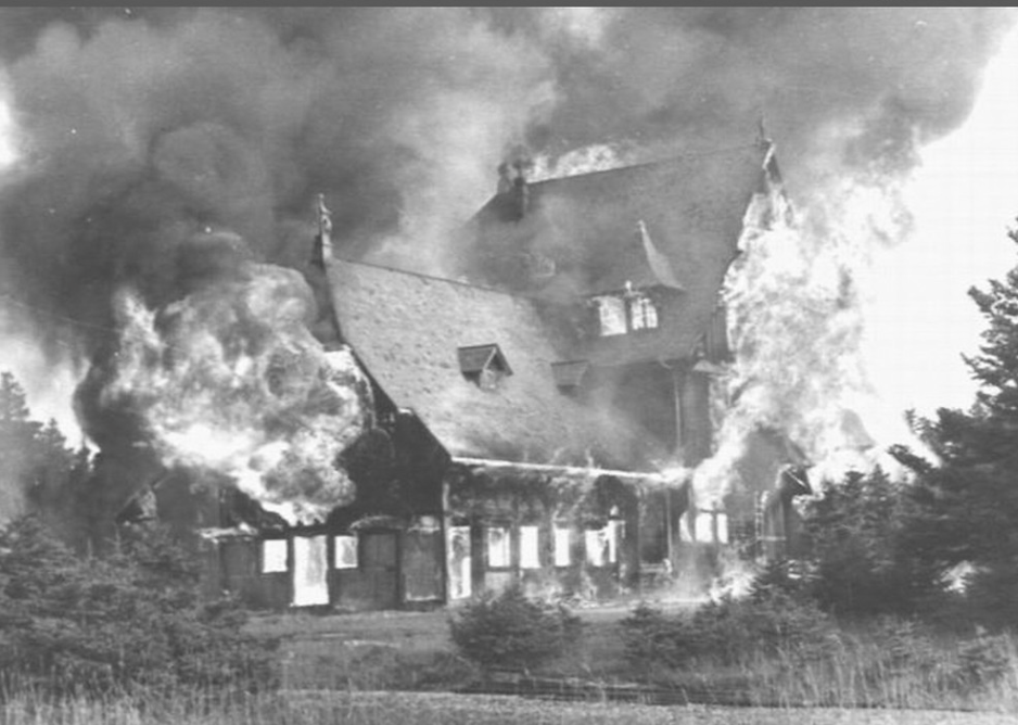 C’est suite à une triste décision que la compagnie propriétaire de l’île fera le choix de se débarasser du château Ménier. La compagnie pretextera le risque d’incendie pour justifier cet acte. Elle décidera ainsi de mettre le feu au château jusqu’à ce qu’il s’écroule. La sinistre tâche est menée à bien le 3 octobre 1953. Un seul individu sera chargé de la tâche. Sous les yeux attristés des habitants et d’au moins un photographe, il versera de l’essence dans tous les coins du château et l’allumera. Les spectateurs regarderont le sinistre jusqu’à ce qu’il ne reste que des braises. Peu de gens se doutent jusqu’à quel point le manoir sera plus tard regretté par beaucoup.