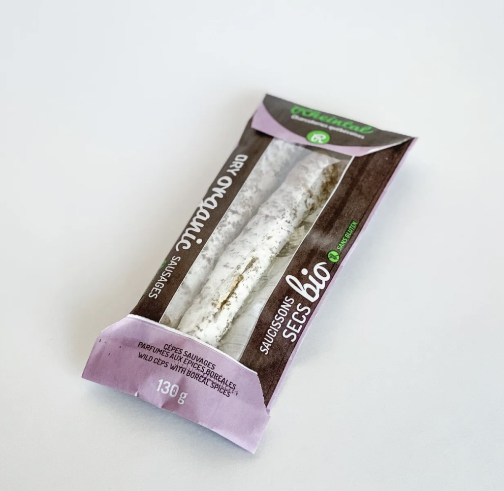Saucisson sec aux cèpes sauvages parfumé aux épices boréales bio, – Rheintal, Bécancour, Bois-Francs