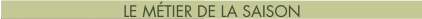 Le Métier de la saison. À chaque numéro de la publication, une page est dédiée à un métier particulier, et à une personne qui exerce ce métier. Voici un aperçu des différents métiers, parfois uniques, parfois de véritables vocations, explorés dans États de Splendeur.
